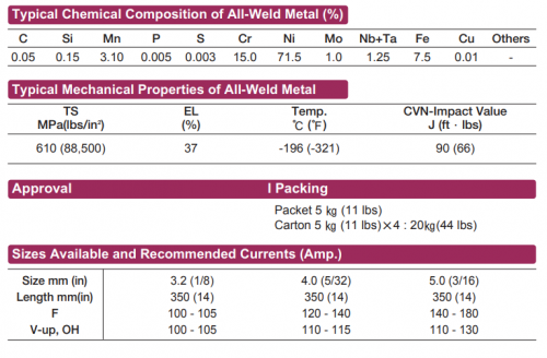 AWS A5.11 / ASME SFA5.11 ENiCrFe-2 is designed for welding of Inconel 600 and 601, Incoloy 800 and 800HT dissmillar welding of stainless steels and low-alloyed steel & Nickel-alloyed steel.(Inconel, Incoloy, Monel alloys) It can be used for welding of overlay cladding where a similar composition.
