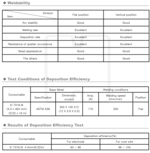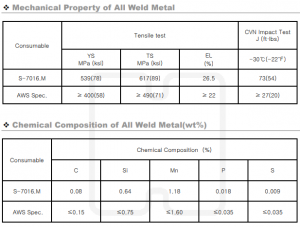 positions welding of 490MPa class high tensile steel. X-ray performance and mechanical properties of weld metal are excellent. The usability such as arc smoothness, slag detachability and bead