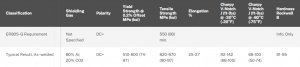 AWS: Alambre ER80S-G MIG (GMAW), Tianjin, China. Alambre MIG microaleado diseñado para soldadura semiautomática o automática de pasadas de raíz, caliente, de llenado y tapa. Soldadura automática o automática de pasadas de raíz, en caliente, de relleno y de tapa en tuberías de grado X80 y pasadas de raíz en tuberías de grado X100.